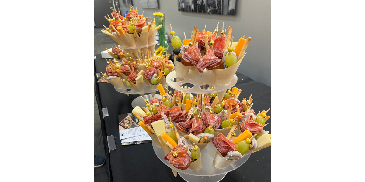Charcuterie cones and cups give guests the option to graze on the go, delivering a picture-perfect display.